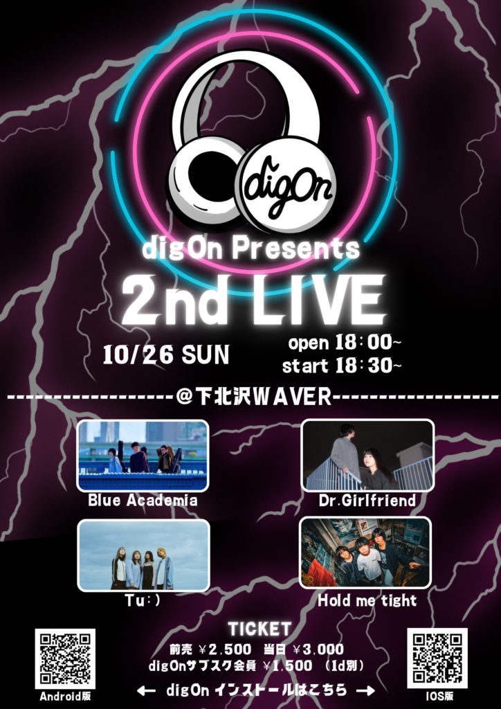 2025年9月2日 / 最終更新日時 : 2025年10月9日 ひとみ笹原 2025年10月 2025年10月26日(日)《night》 gigOn Presents『2nd LIVE』 Blue Academia/Dr.Girlfriend/Tu:)/Hold me tight 18:00 / 18:30 adv¥2,500 / door¥3,000 / digOnサブスク会員¥1,500 各+drink代別 FacebookXBlueskyHatenaCopy