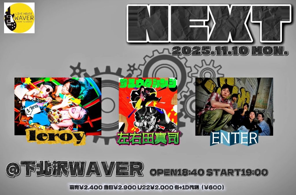 2025年10月1日 / 最終更新日時 : 2025年10月28日 ひとみ笹原 2025年11月 2025年11月10日(月) 『NEXT』 ENTER/leroy/左右田真司 18:40 / 19:00 adv¥2,400 / door¥2,900 / U22¥2,000 各+drink代別 FacebookXBlueskyHatenaCopy