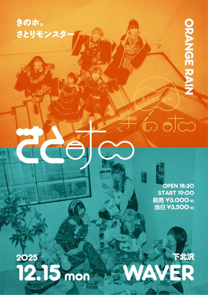 2025年11月9日 / 最終更新日時 : 2025年12月5日 ひとみ笹原 2025年12月 2025年12月15日(月) 『さとホ。〜ORANGE RAIN 〜』 きのホ。/さとりモンスター 18:30 / 19:00 adv¥3,000 / door¥3,500 各+drink代別 ticketはこちらをご覧下さい。 FacebookXBlueskyHatenaCopy