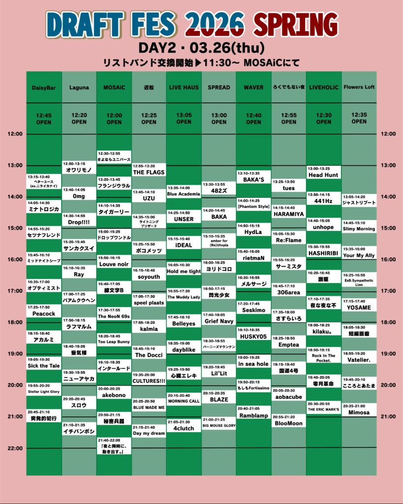 2026年2月4日 / 最終更新日時 : 2026年2月4日 ひとみ笹原 2026年03月 2026年03月26日(木) 『DRAFT FES 2026 SPRING』 ticketはこちらをご覧下さい。 FacebookXBlueskyHatenaCopy